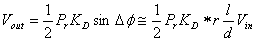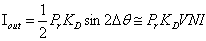 同様に検光子Uの方位角をθ₂=45˚、偏光子の偏光方向をθ₀=45˚、バイアス板の位相差をφ₀=90˚とすると、受光器Uの検波出力Voutは